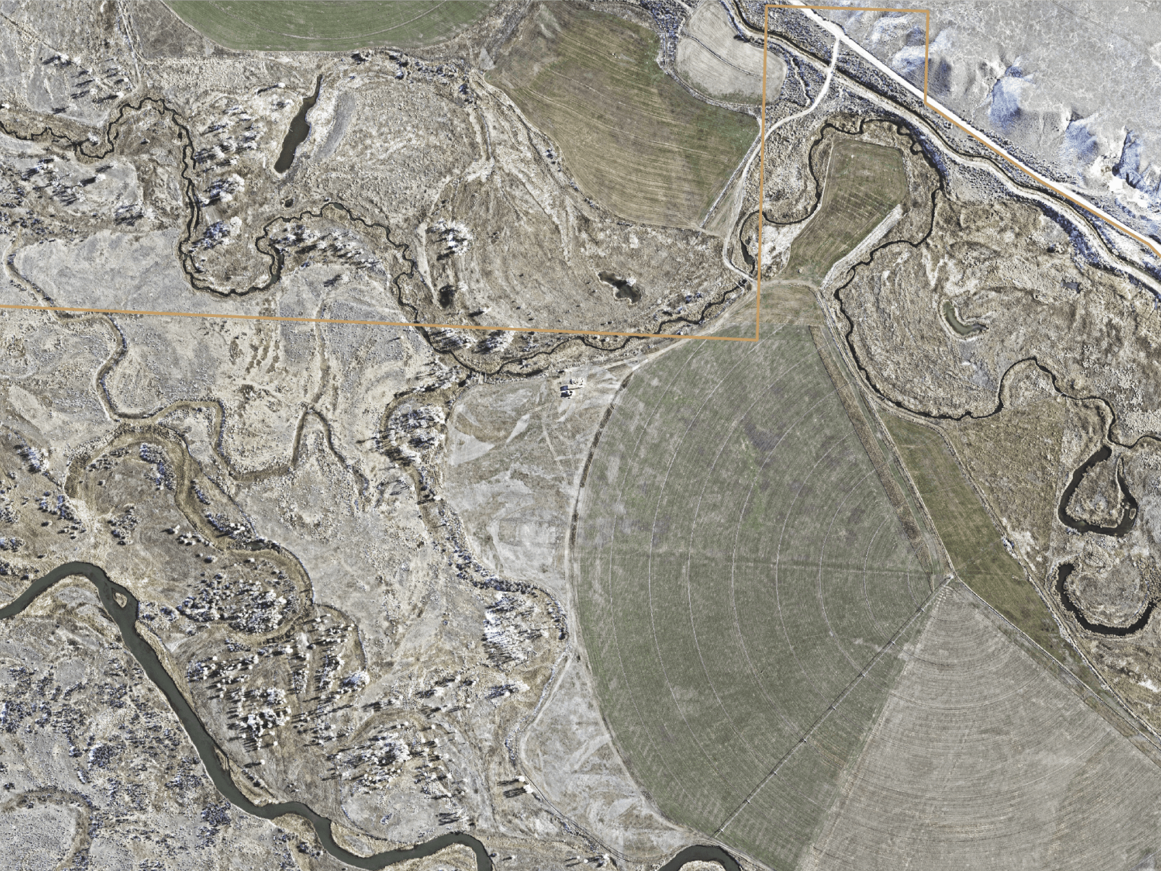 Our orthophotography is captured at between 3” and 6” pixel resolution, allowing for analysis of extremely fine detail such as vegetation type and density, river bank composition and stability, or animal and equipment tracks in snow or substrates.